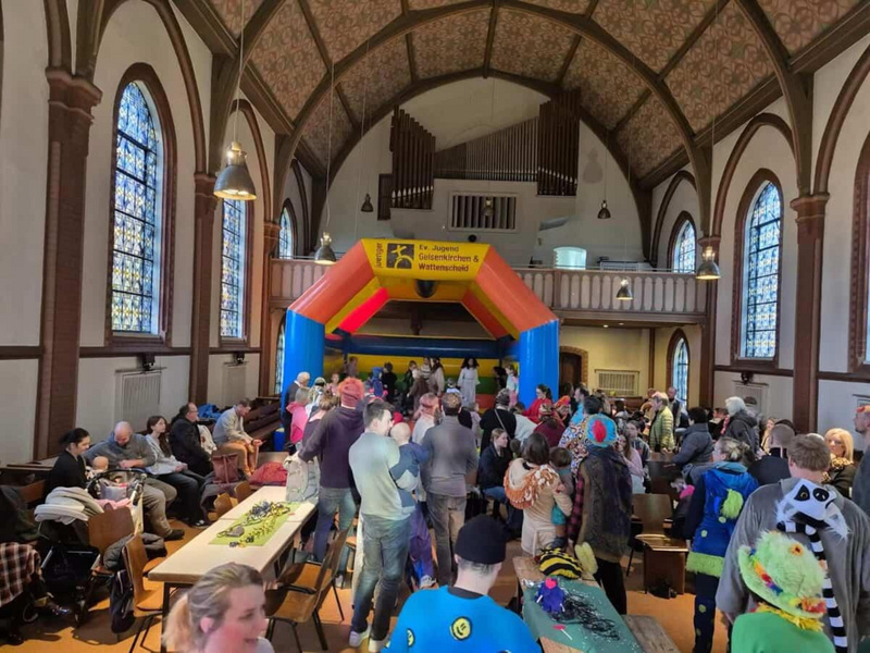 Die Idee sei schon länger gereift, erzählt Pfarrerin Mirjam Domke. „Ich hatte mich von einer Nachbargemeinde inspirieren lassen, die einen Indoor-Spielplatz im Gemeindehaus anbietet. Da dachte ich: In der Kirche wäre das doch noch viel cooler.“ Gemeinsam mit Jugendmitarbeiter und Diakon Martin Grube wurde der Plan umgesetzt: mit Hüpfburg, Rutschfahrzeugen, einem Bauteppich, Bastelstationen und Waffeln.