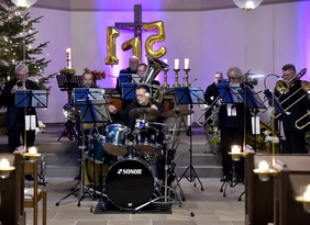 Die Orgel, vor 23 Jahren Anlass für diese Konzertreihe, durfte sich diesmal etwas ausruhen. Im Mittelpunkt stand das Blechbläserensemble von BACK TO BRASS, und startete bei „O du fröhliche“ erst einmal ganz leise mit einer Triangel, bevor sich dann die Blasinstrumente festlich dazu gesellten.