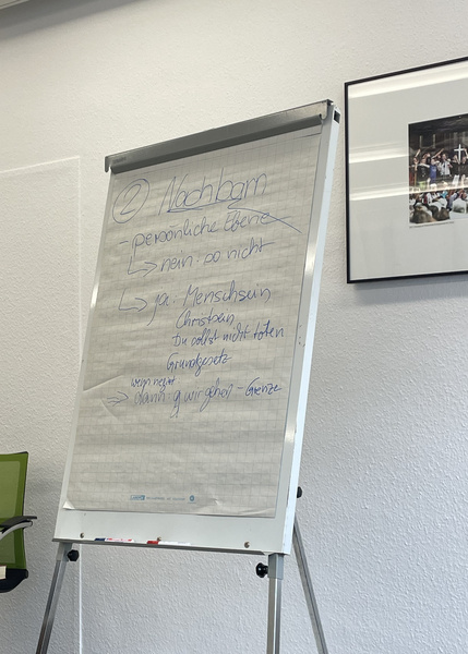 In der großen Austauschrunde zu Beginn zeigte sich schnell: Die Erfahrungen der Teilnehmenden sind vielfältig – und oft alltäglicher als erwartet. Offen politische Diskussionen im Gemeindesaal gebe es zwar, jedoch selten. Die meisten berichteten von kleinen, spontanen Situationen: ein Satz nach dem Gottesdienst, ein Kommentar in der Gemeindeversammlung oder eine Bemerkung am Gartenzaun. Gerade diese beiläufigen Begegnungen seien herausfordernd, so mehrere Teilnehmende, weil sie unvermittelt auftreten und kaum Zeit für Vorbereitung bieten. Genau hier knüpfte Hiddemanns Impuls an: Rechtspopulistische Botschaften wirkten oft nur, weil sie unwidersprochen bleiben, und nicht weil sie argumentativ überzeugen.