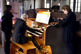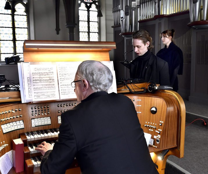 Anders als sonst saßen die Zuhörerinnen und Zuhörer ausschließlich unten im Kirchraum, nicht auf der Orgelempore. Sie wurden so zu Akusmatikern, sahen also nicht die Musiker:innen und deren Instrumente, sondern nahmen die Musik ausschließlich übers Gehör wahr. Dafür waren Lautsprecher so in der Kirche verteilt positioniert, dass das Publikum mittendrin quasi auch Teil des Geschehens wurde.