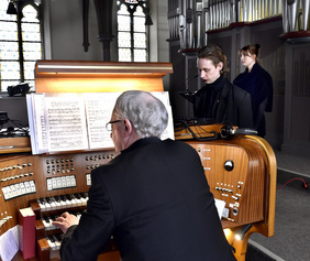 In den langsam verhallenden Glockenklang setzte Kreiskantor Andreas Fröhling zu Beginn ganz leise eine kurze musikalische Einleitung an der Orgel. Das Publikum wurde so in eine besondere Stimmung mit hineingezogen.